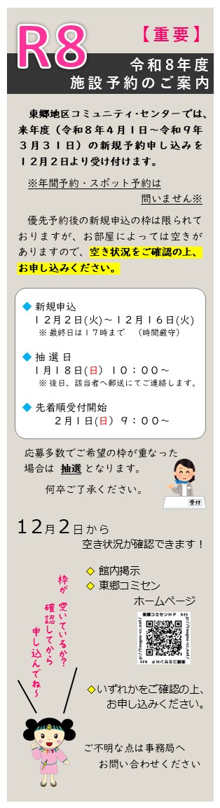 【2025.10.10】令和8年度 施設予約について